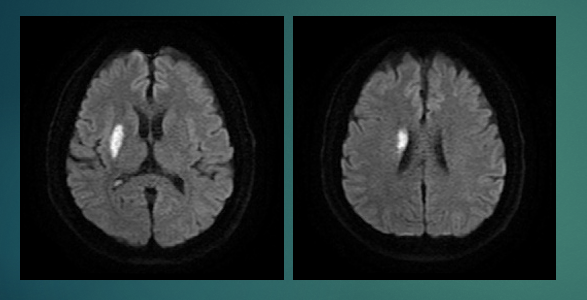 MRI (磁力共振造影) 的擴散加權成像(Diffusion-Weighted Imaging, DWI ) 影像 對缺血性中風非常敏感,為CT的4–5倍。超早期 (hyperacute)缺血性中風是指發病後最初數小時(通常0-6小時)內的階段,此時腦組織正處於最高風險,但若及時介入,仍有極高機會挽救。MRI (磁力共振造影) (DWI),在此階段被公認為最敏感、最準確的診斷工具,能在腦細胞缺血數分鐘內即顯示異常。相反,CT (電腦掃描) 在缺血性中風的超早期時刻,通常都是的呈假陰性(假陰性率高達50%以上)