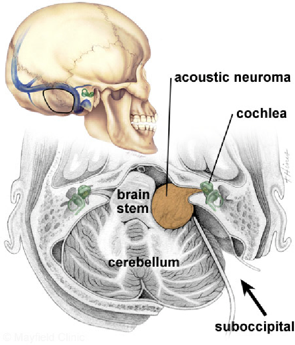 一般來說,微創顯微鏡手術切除是根治聽覺神經瘤的方法,但由於腫瘤與神經線和腦幹的緊密關係,手術過程有一定風險,尤其是聽覺神經受損導致聽力喪失,或是面肌神經受損以致面癱的可能性較大。然而經驗豐富的腦神經外科醫生會在顯微鏡下,以熟練精巧的手術,並利用手術中持續神經監測系統(Continuous Intraoperative Neural Monitoring System IOM),大大提高聽覺神經及面肌神經的功能保存。經驗豐富的腦神經外科醫生,腫瘤全切率達97至100%,面肌神經的功能保存率為51至98.2%,聽力保存率為19至40%,腫瘤復發率為5至10%。